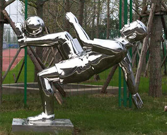 不銹鋼運動人物雕塑是以一些抽象的各種人物為造型的雕塑藝術。由于不銹鋼材料的使用,不銹鋼運動雕塑大致可分為鏡面拋光運動人物雕塑、編織運動人物雕塑以及可以上色的不銹鋼運動人物雕塑等幾類。一般均放置在戶外場所,成為反應社會生活,增添城市環境建設的景觀雕塑。
